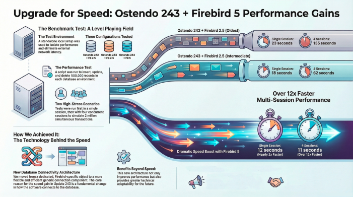 Ostendo Update 243 + Firebird 5 delivers a new performance benchmark.