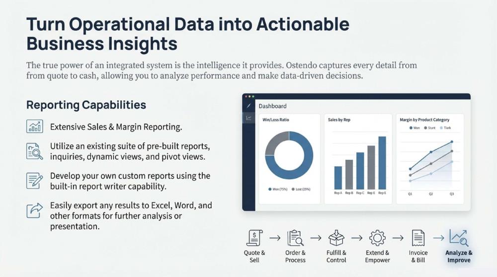Ostendo Continuum ERP delivers business intelligence that is flexible, real-time, and deeply connected to operations — empowering organisations to move beyond reporting and into true insight-driven performance.
