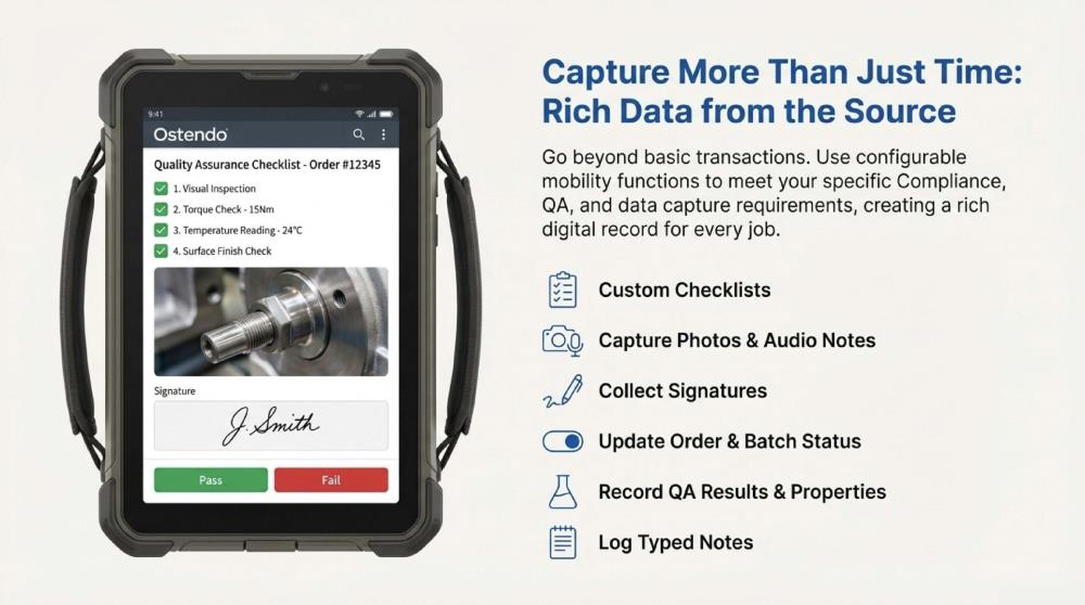 This approach allows virtually unlimited structured data capture — not just transactions, but inspections, diagnostics, surveys, compliance checks, and quality assurance.